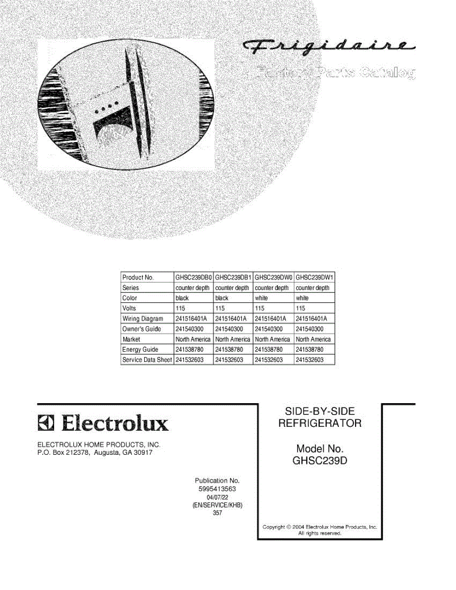 Parts for Frigidaire GHSC239DB1: 01 - Cover Parts