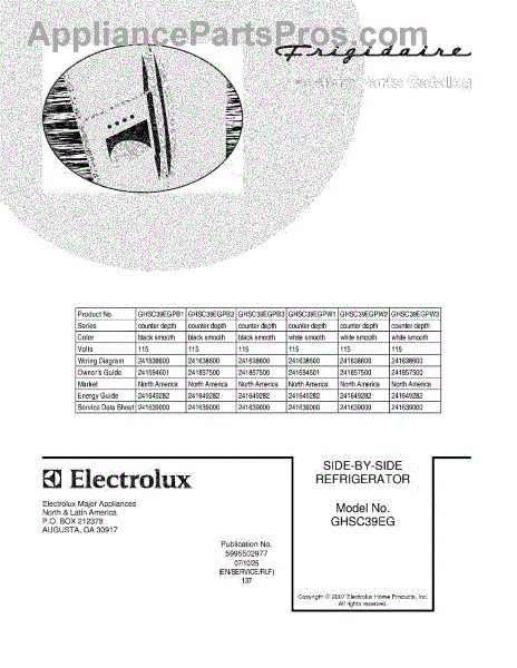 Parts for Frigidaire GHSC39EGPB2: 01 - Cover Parts