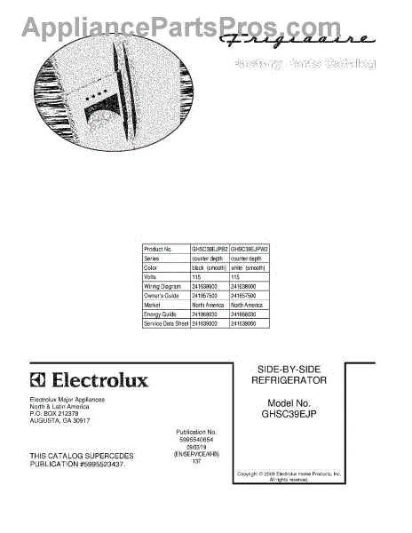Parts for Frigidaire GHSC39EJPB2: 01 - Cover Parts