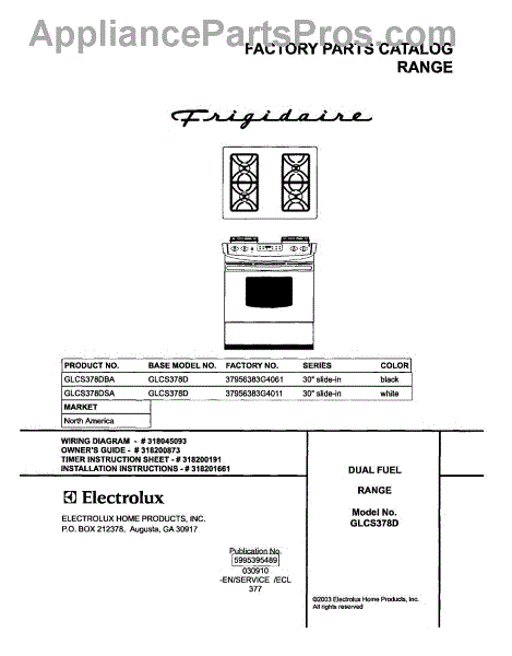 Parts for Frigidaire GLCS378DSA: 01 - Cover Parts
