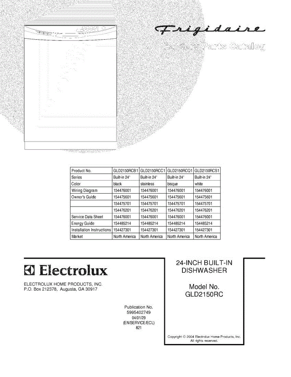 Parts for Frigidaire GLD2150RCS1: 01 - Cover Parts