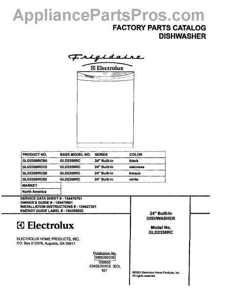 Parts for Frigidaire GLD2350RCB0: 01 - Cover Parts