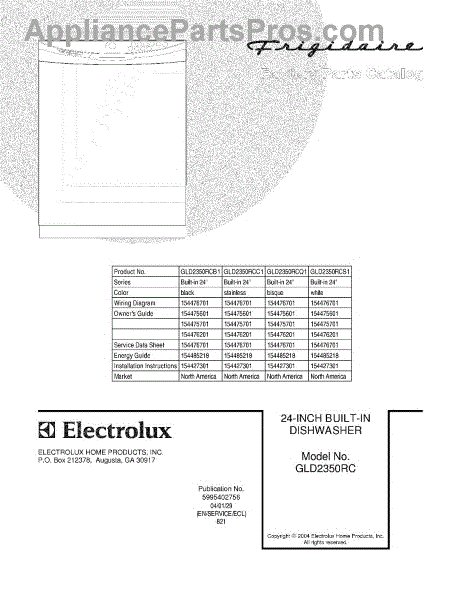 Parts for Frigidaire GLD2350RCS1: 01 - Cover Parts