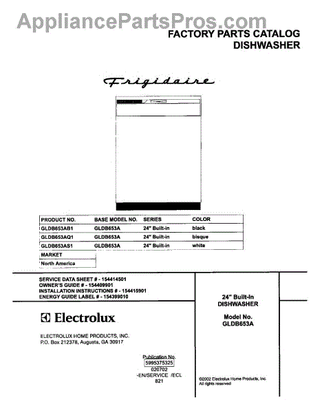 Parts for Frigidaire GLDB653AQ1: 01 - Cover Parts