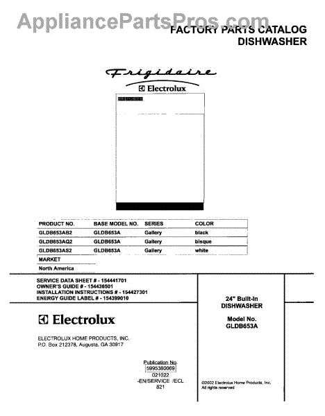 Parts for Frigidaire GLDB653AS2: 01 - Cover Parts