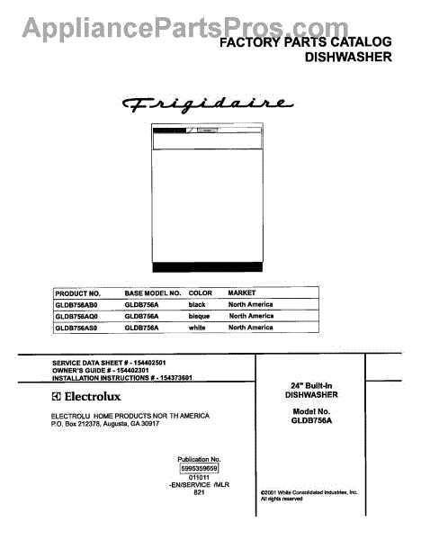 Parts for Frigidaire GLDB756AQ0: 01 - Cover Parts