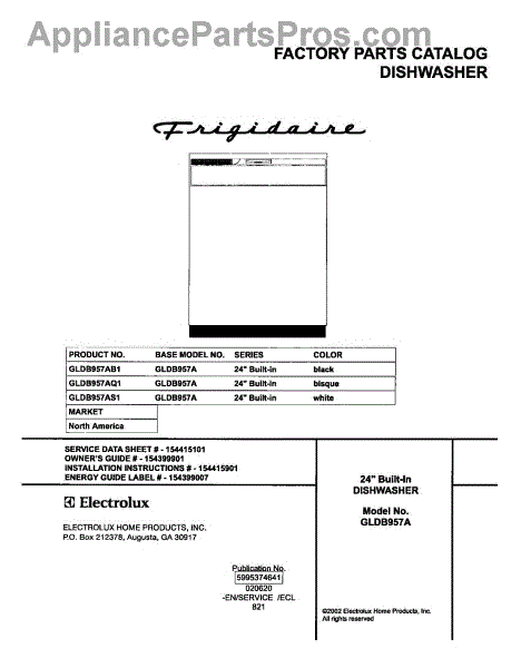 Parts for Frigidaire GLDB957AB1: 01 - Cover Parts