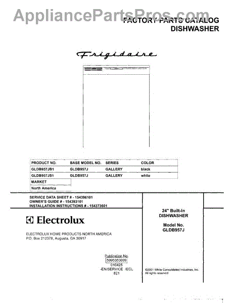 Parts for Frigidaire GLDB957JS1: 01 - Cover Parts