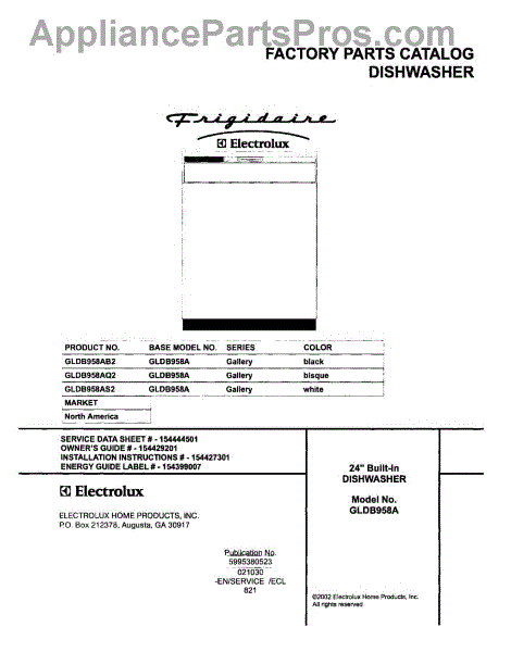 Parts for Frigidaire GLDB958AB2: 01 - Cover Parts
