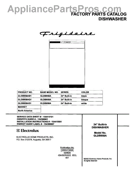 Parts for Frigidaire GLDB958AS1: 01 - Cover Parts