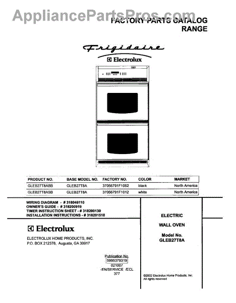 Parts for Frigidaire GLEB27T8ABB: 01 - Cover Parts
