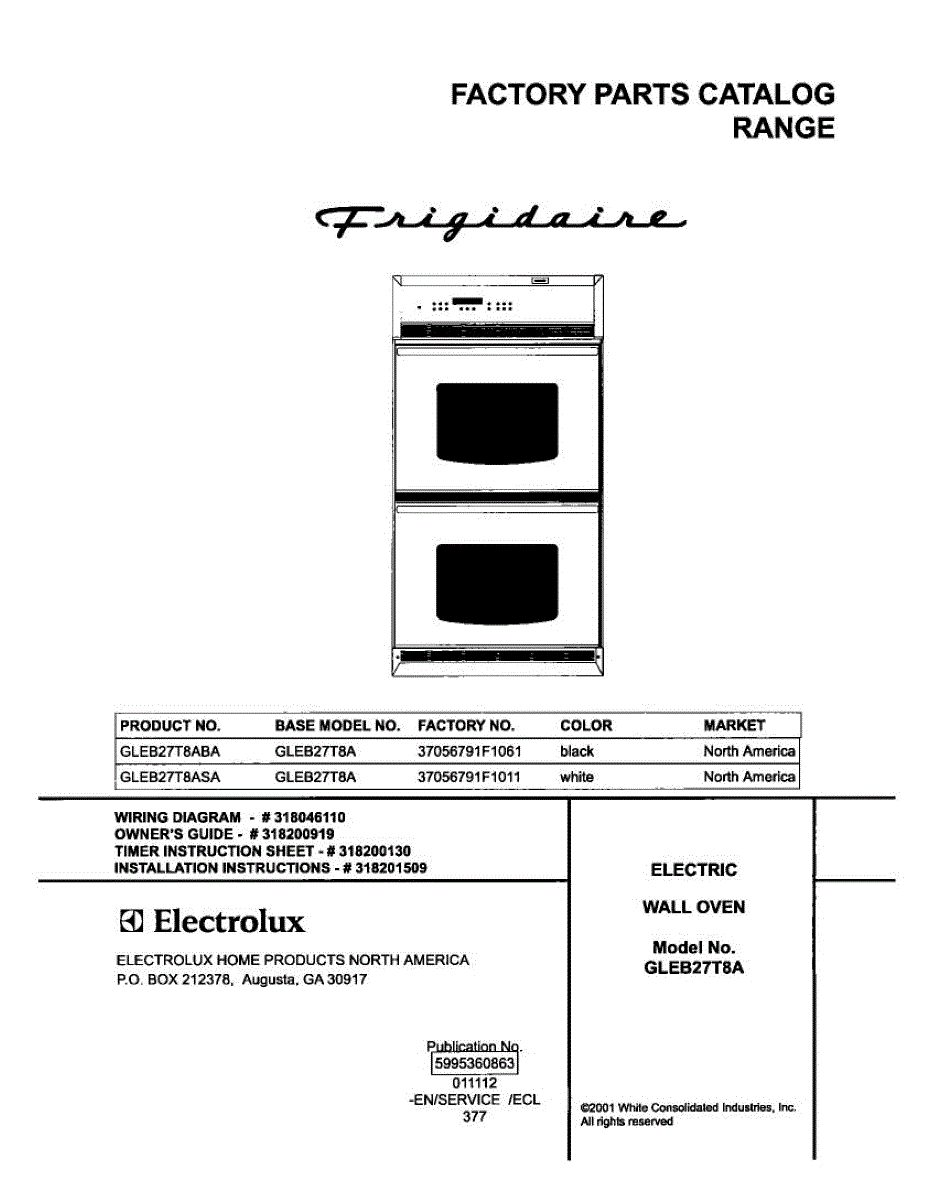 Parts for Frigidaire GLEB27T8ASA: 01 - Cover Parts