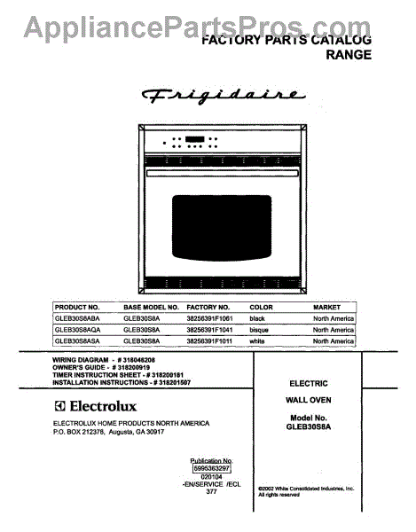 Parts for Frigidaire GLEB30S8ASA: 01 - Cover Parts