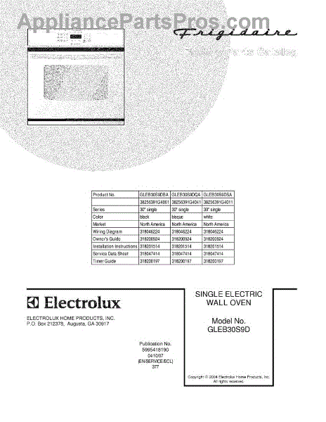 Parts for Frigidaire GLEB30S9DBA: 01 - Cover Parts