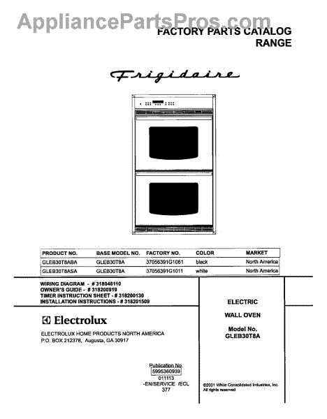 Parts for Frigidaire GLEB30T8ABA: 01 - Cover Parts