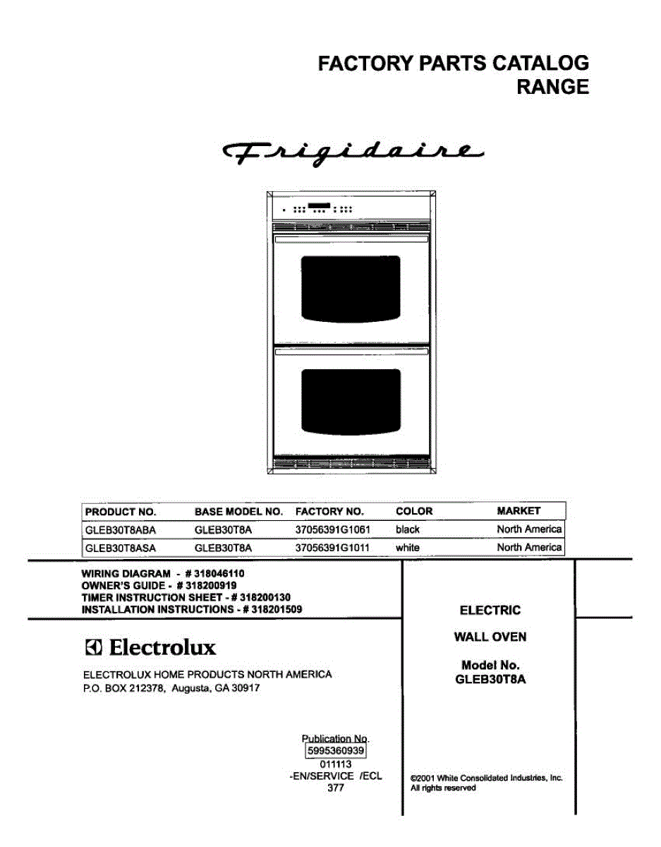 Parts for Frigidaire GLEB30T8ASA: 01 - Cover Parts