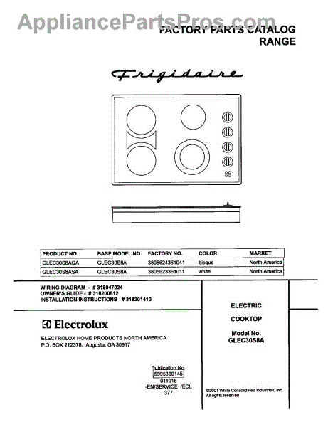Parts for Frigidaire GLEC30S8ASA: 01 - Cover Parts