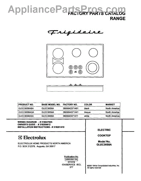 Parts for Frigidaire GLEC36S8ABA: 01 - Cover Parts