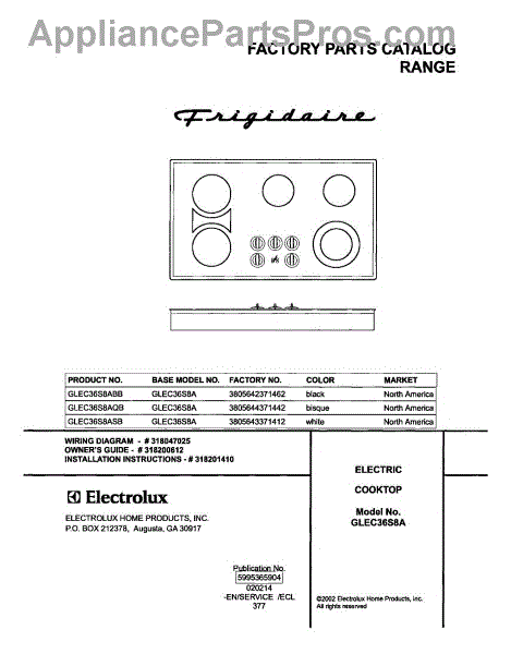 Parts for Frigidaire GLEC36S8ASB: 01 - Cover Parts