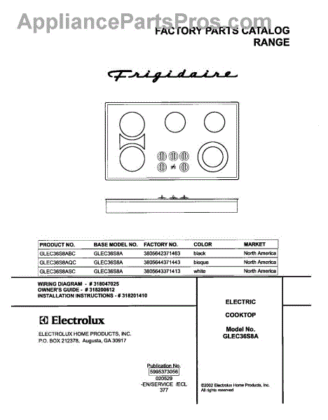 Frigidaire Cooktop Parts