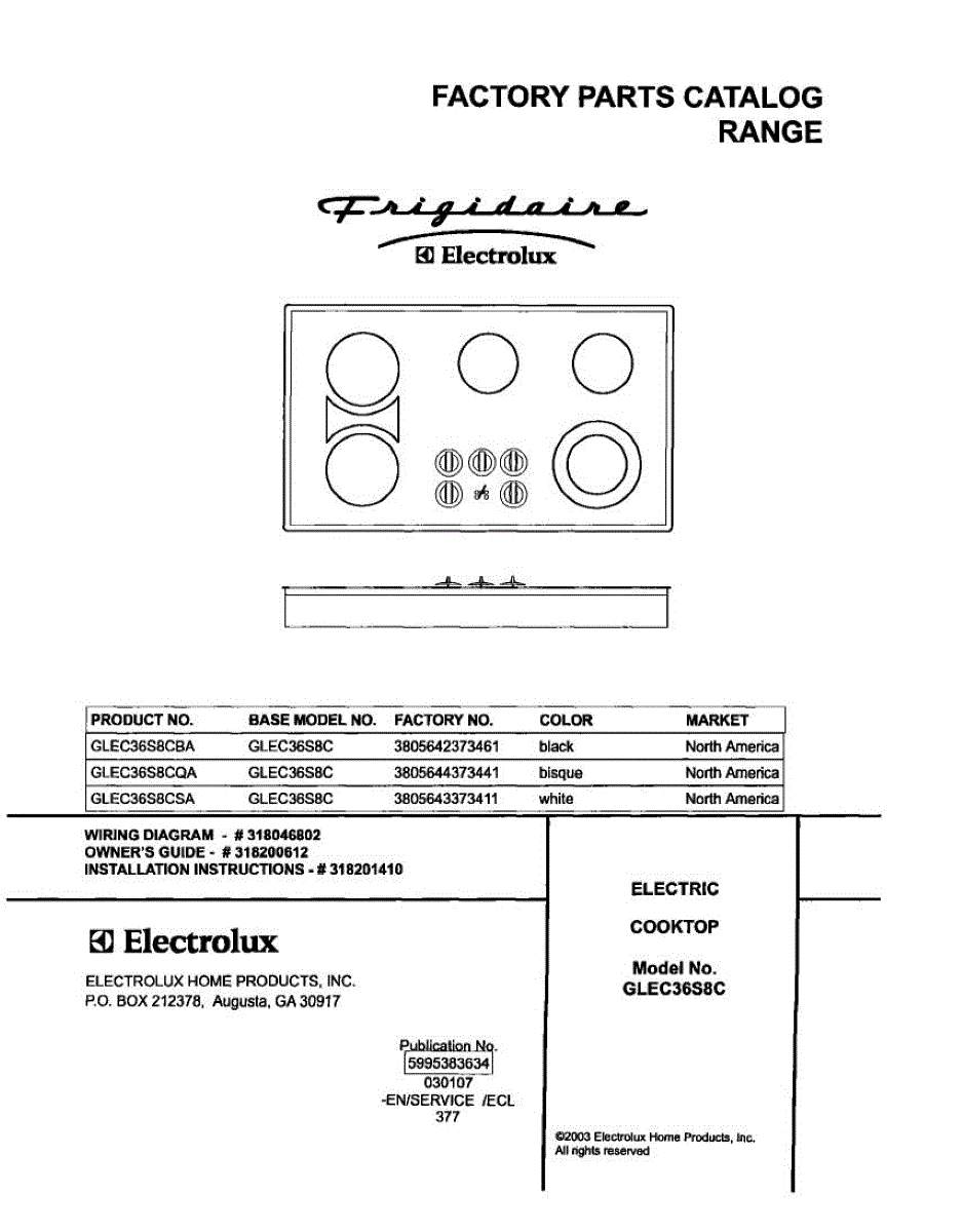 Parts for Frigidaire GLEC36S8CSA: 01 - Cover Parts
