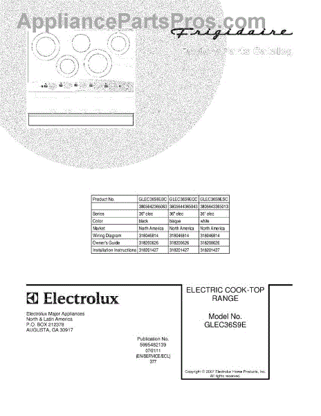 Parts for Frigidaire GLEC36S9EQC: 01 - Cover Parts