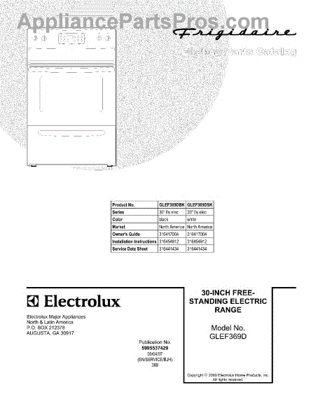 Parts for Frigidaire GLEF369DSK: 01 - Cover Parts