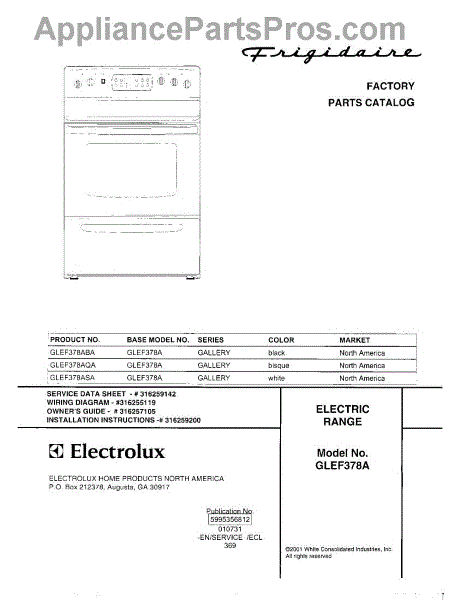 Parts for Frigidaire GLEF378AQA: 01 - Cover Parts