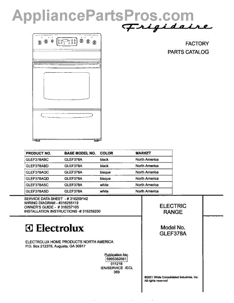 Parts for Frigidaire GLEF378AQC: 01 - Cover Parts