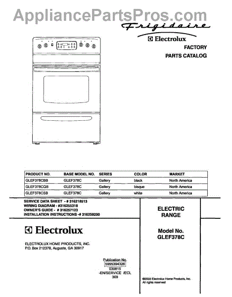 Parts for Frigidaire GLEF378CSB: 01 - Cover Parts