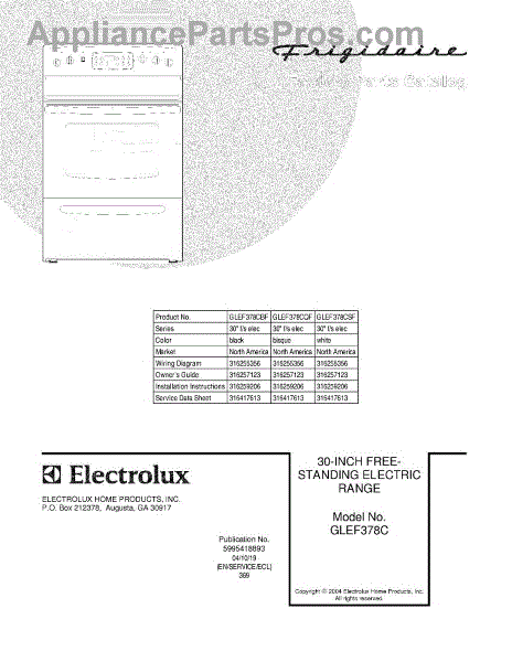 Parts for Frigidaire GLEF378CSF: 01 - Cover Parts