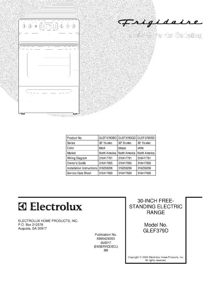 Parts for Frigidaire GLEF379DQD: 01 - Cover Parts