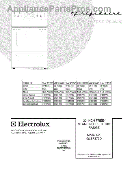 Parts for Frigidaire GLEF379DSA: 01 - Cover Parts
