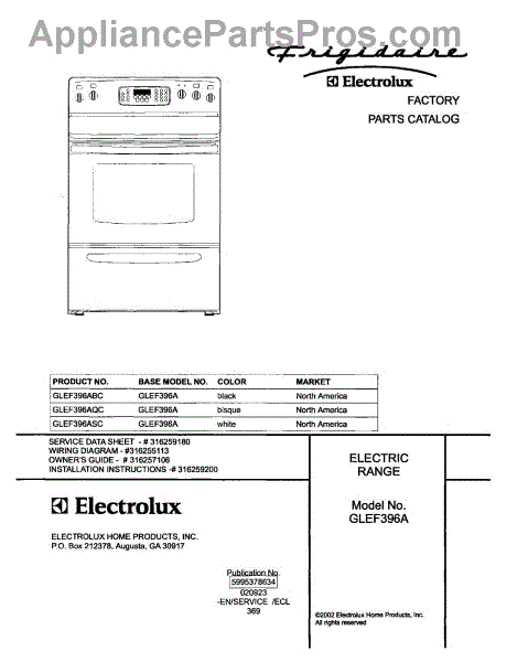 Parts for Frigidaire GLEF396ASC: 01 - Cover Parts