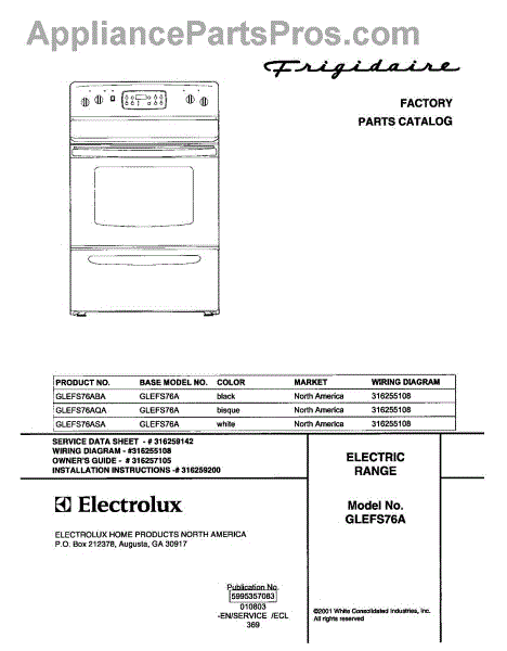 Parts for Frigidaire GLEFS76ASA: 01 - Cover Parts