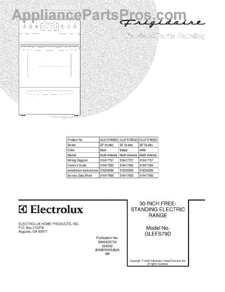 Parts for Frigidaire GLEFS79DSD: 01 - Cover Parts