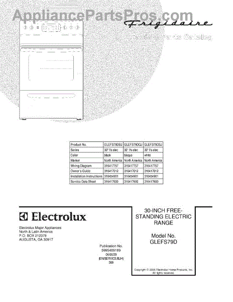 Parts for Frigidaire GLEFS79DSJ: 01 - Cover Parts