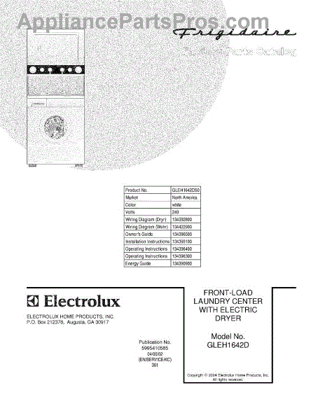 Parts for Frigidaire GLEH1642DS0: 01 - Cover Parts