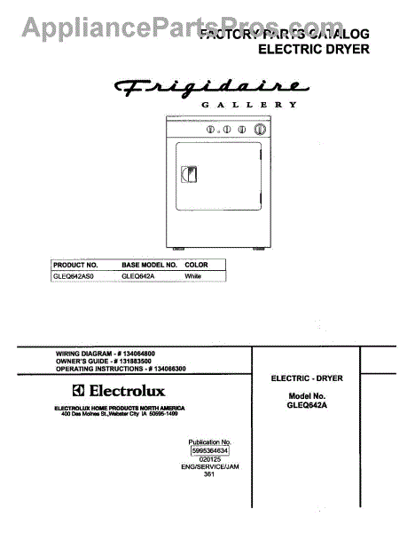 Parts for Frigidaire GLEQ642AS0: 01 - Cover Parts