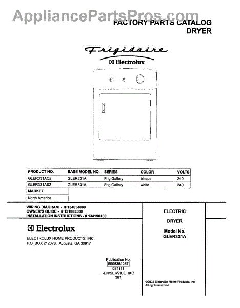 Parts for Frigidaire GLER331AS2: 01 - Cover Parts