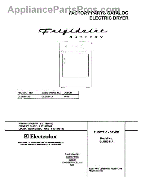 Parts for Frigidaire GLER341AS1: 01 - Cover Parts