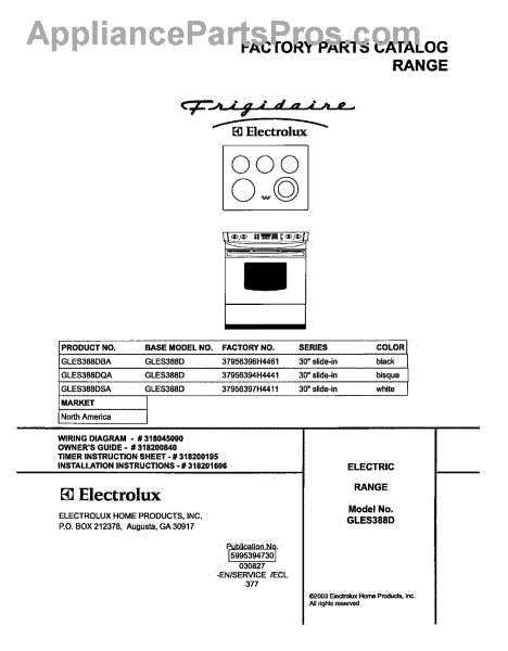 Parts for Frigidaire GLES388DBA: 01 - Cover Parts