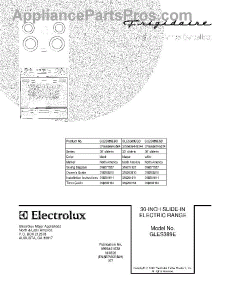 Parts for Frigidaire GLES389EBD: 01 - Cover Parts