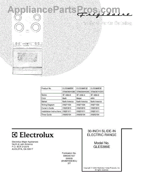 Parts for Frigidaire GLES389ESE: 01 - Cover Parts