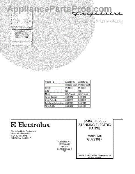 Parts for Frigidaire GLES389FSD: 01 - Cover Parts
