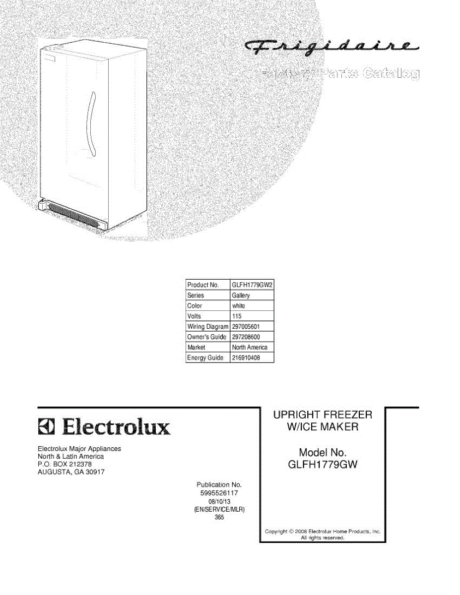 Parts for Frigidaire GLFH1779GW2: 01 - Cover Parts