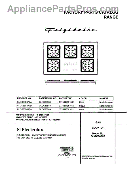 Parts for Frigidaire GLGC36S8ASA: 01 - Cover Parts