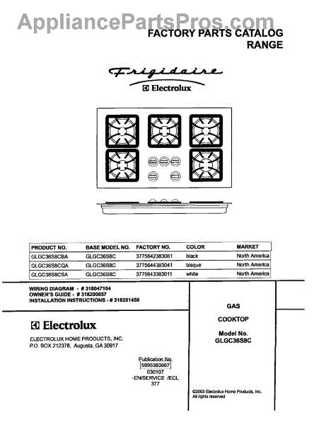 Parts for Frigidaire GLGC36S8CQA: 01 - Cover Parts