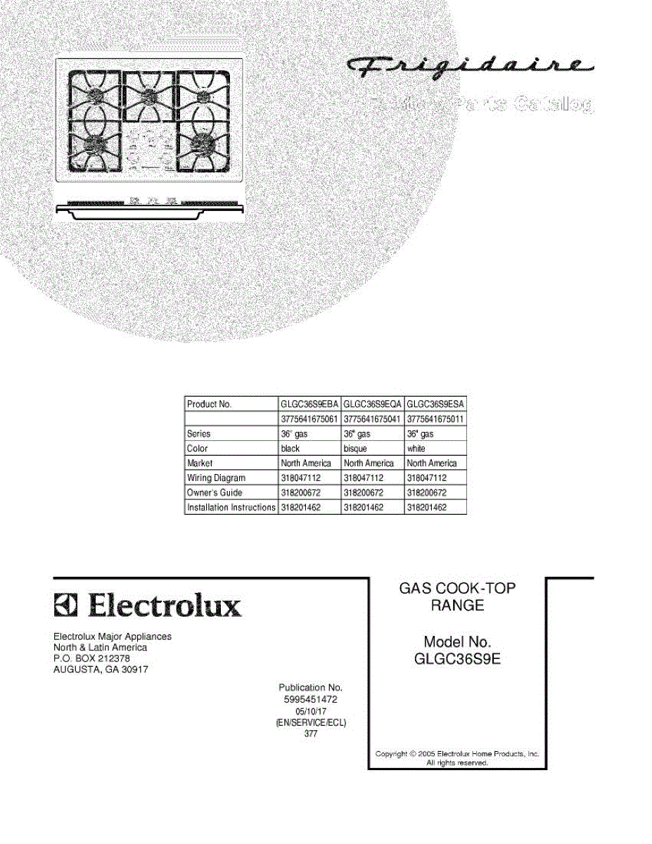 Parts for Frigidaire GLGC36S9EBA: 01 - Cover Parts