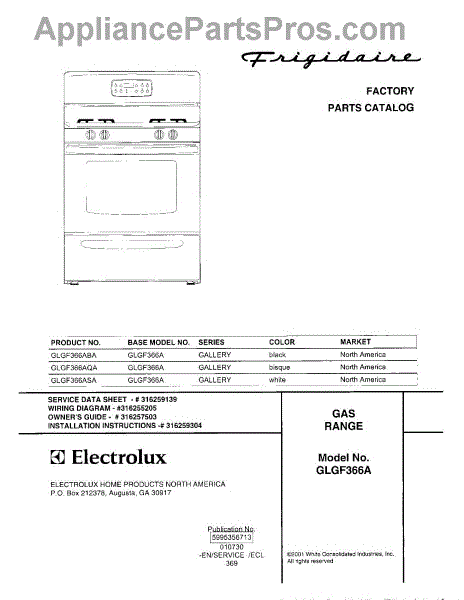 Parts for Frigidaire GLGF366ABA: 01 - Cover Parts